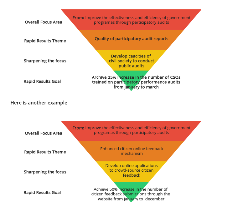The following rapid results funnel can be used as a guide in coming up with a rapid result goal: